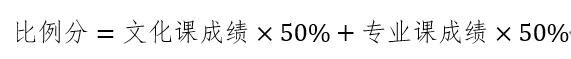 在实行平行志愿的省份,按照投档成绩从高到低的顺序择优录取。在实行顺序志愿的省份,按照比例分(四舍五入、保留小数点后两位)从高到低的顺序择优录取。比例分满分为100分,计算公式为: